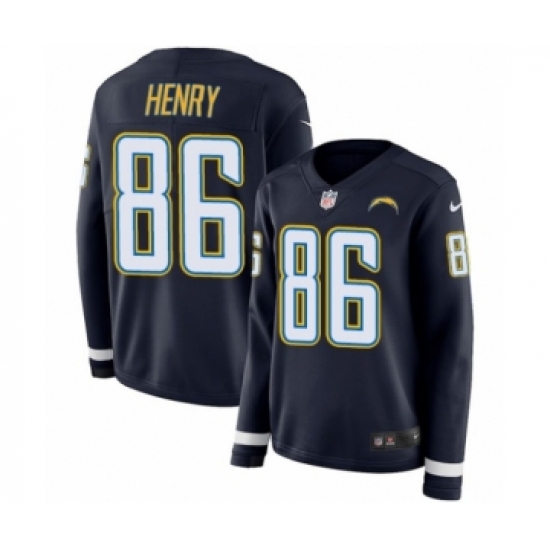 >Women's Nike Los Angeles Chargers #86 Hunter Henry Limited Navy Blue Therma Long Sleeve NFL Jersey
