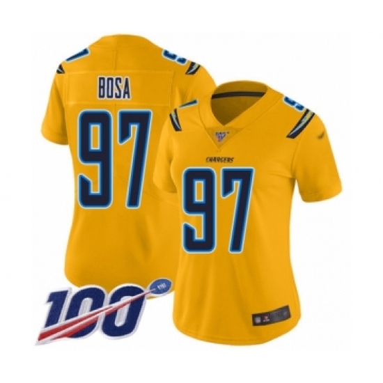 Women's Nike Los Angeles Chargers #97 Joey Bosa Limited Gold Inverted Legend 100th Season NFL Jersey