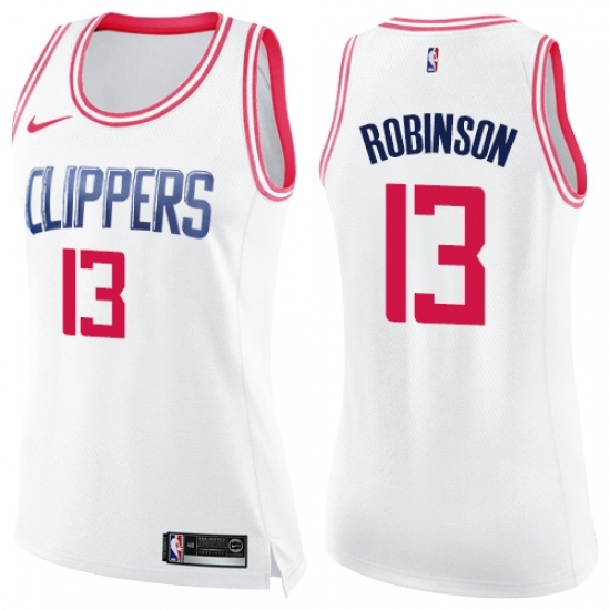Women's Nike Los Angeles Clippers #13 Jerome Robinson Swingman White Pink Fashion NBA Jersey