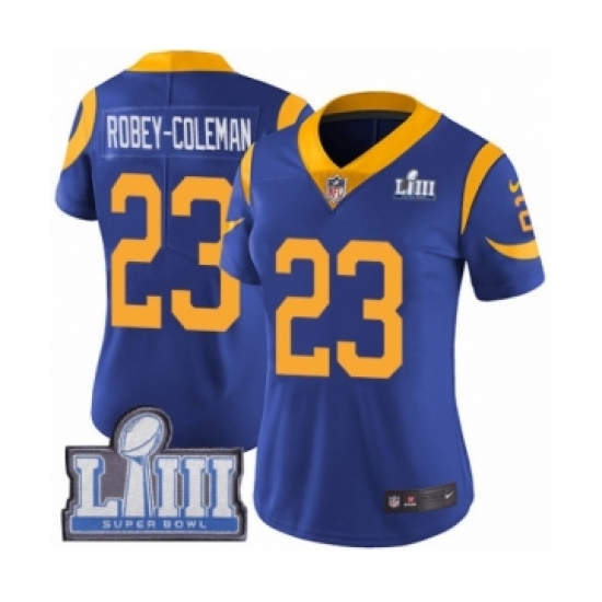 >Women's Nike Los Angeles Rams #23 Nickell Robey-Coleman Royal Blue Alternate Vapor Untouchable Limited Player Super Bowl LIII Bound NFL Jersey