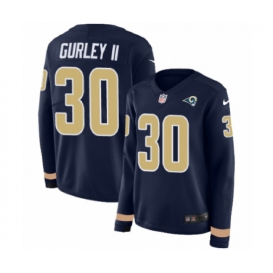 >Women's Nike Los Angeles Rams #30 Todd Gurley Limited Navy Blue Therma Long Sleeve NFL Jersey