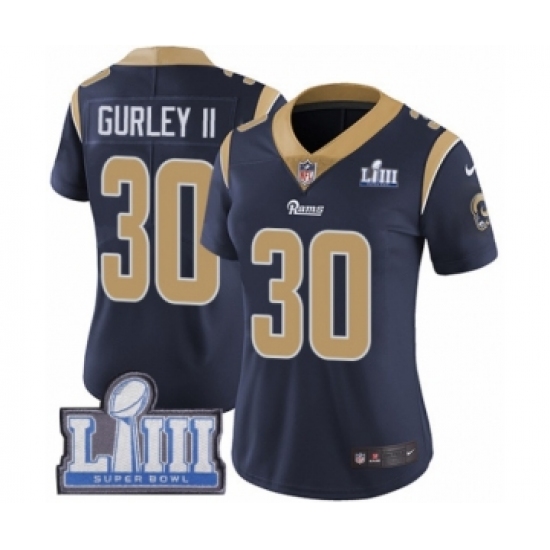 Women's Nike Los Angeles Rams #30 Todd Gurley Navy Blue Team Color Vapor Untouchable Limited Player Super Bowl LIII Bound NFL Jersey