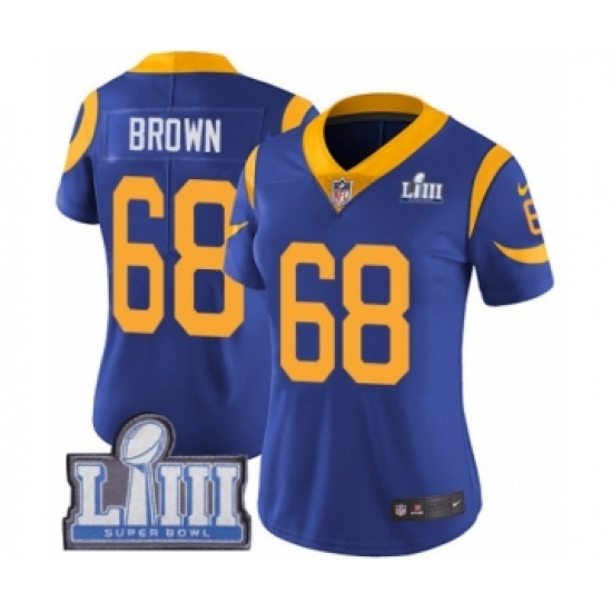 Women's Nike Los Angeles Rams #68 Jamon Brown Royal Blue Alternate Vapor Untouchable Limited Player Super Bowl LIII Bound NFL Jersey