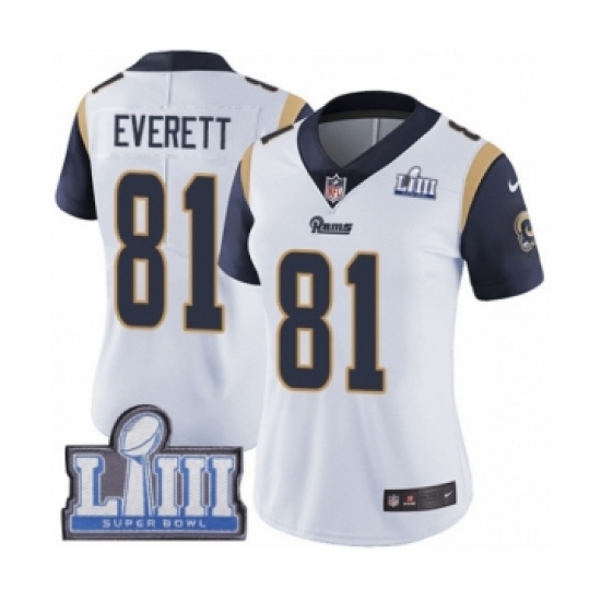 >Women's Nike Los Angeles Rams #81 Gerald Everett White Vapor Untouchable Limited Player Super Bowl LIII Bound NFL Jersey