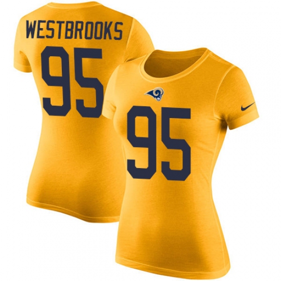 >Women's Nike Los Angeles Rams #95 Ethan Westbrooks Gold Rush Pride Name & Number T-Shirt
