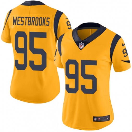 >Women's Nike Los Angeles Rams #95 Ethan Westbrooks Limited Gold Rush Vapor Untouchable NFL Jersey