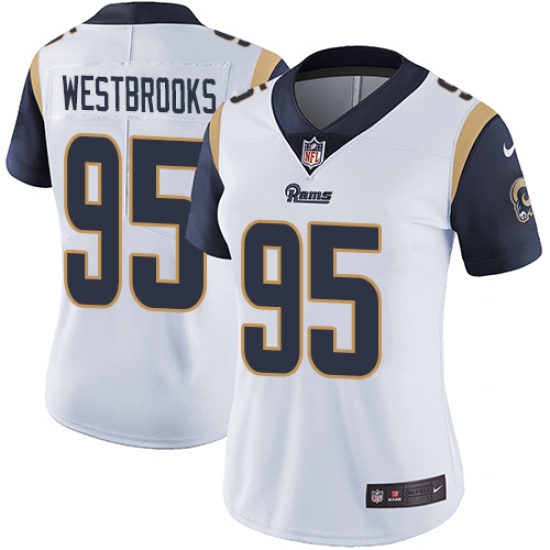 >Women's Nike Los Angeles Rams #95 Ethan Westbrooks White Vapor Untouchable Limited Player NFL Jersey