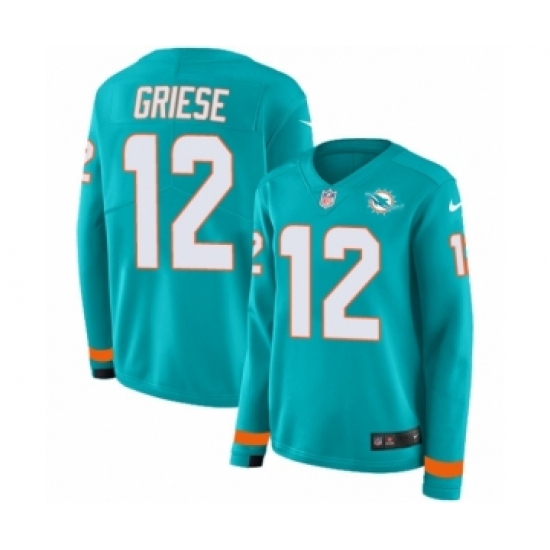 >Women's Nike Miami Dolphins #12 Bob Griese Limited Aqua Therma Long Sleeve NFL Jersey