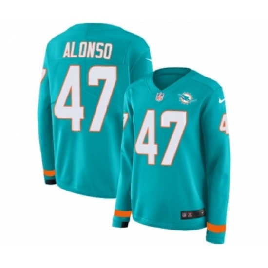 >Women's Nike Miami Dolphins #47 Kiko Alonso Limited Aqua Therma Long Sleeve NFL Jersey
