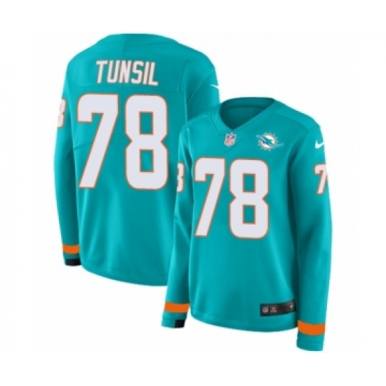Women's Nike Miami Dolphins #78 Laremy Tunsil Limited Aqua Therma Long Sleeve NFL Jersey