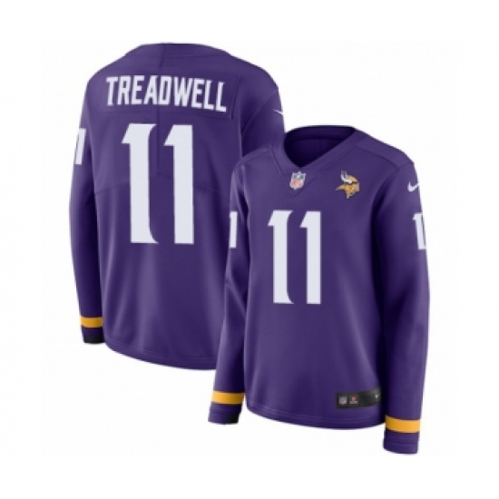 >Women's Nike Minnesota Vikings #11 Laquon Treadwell Limited Purple Therma Long Sleeve NFL Jersey