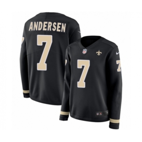 >Women's Nike New Orleans Saints #7 Morten Andersen Limited Black Therma Long Sleeve NFL Jersey