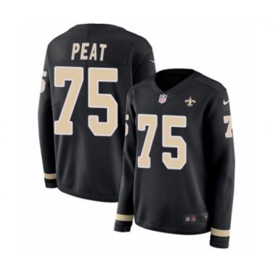 Women's Nike New Orleans Saints #75 Andrus Peat Limited Black Therma Long Sleeve NFL Jersey