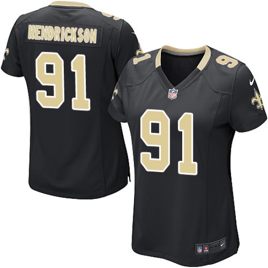 Home>NFL>New Orleans Saints>Trey Hendrickson>Women's Nike New Orleans Saints #91 Trey Hendrickson Game Black Team Color NFL Jersey