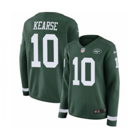 >Women's Nike New York Jets #10 Jermaine Kearse Limited Green Therma Long Sleeve NFL Jersey