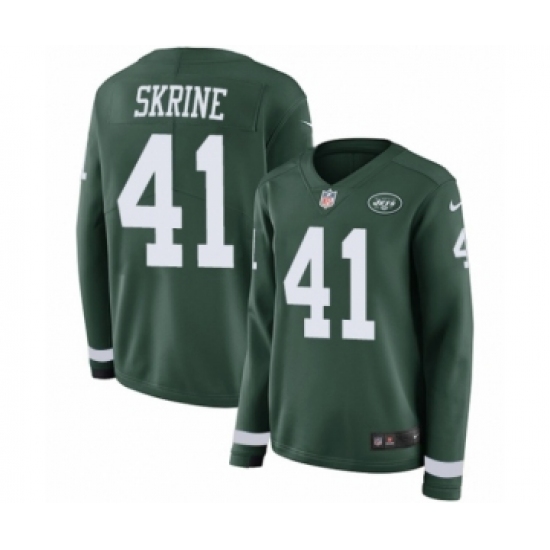 >Women's Nike New York Jets #41 Buster Skrine Limited Green Therma Long Sleeve NFL Jersey