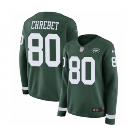 >Women's Nike New York Jets #80 Wayne Chrebet Limited Green Therma Long Sleeve NFL Jersey