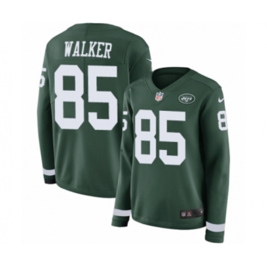 >Women's Nike New York Jets #85 Wesley Walker Limited Green Therma Long Sleeve NFL Jersey