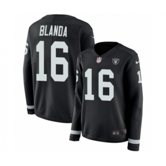 >Women's Nike Oakland Raiders #16 George Blanda Limited Black Therma Long Sleeve NFL Jersey
