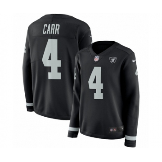 >Women's Nike Oakland Raiders #4 Derek Carr Limited Black Therma Long Sleeve NFL Jersey