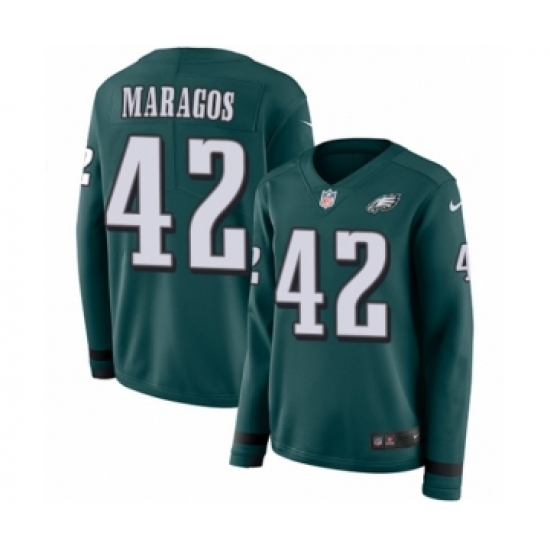 >Women's Nike Philadelphia Eagles #42 Chris Maragos Limited Green Therma Long Sleeve NFL Jersey