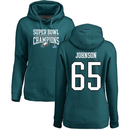 Women's Nike Philadelphia Eagles #65 Lane Johnson Green Super Bowl LII Champions Pullover Hoodie