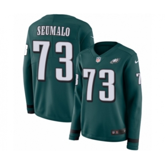 >Women's Nike Philadelphia Eagles #73 Isaac Seumalo Limited Green Therma Long Sleeve NFL Jersey