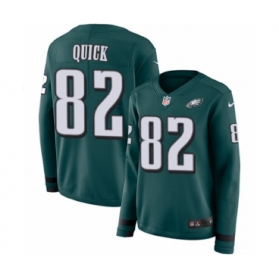 >Women's Nike Philadelphia Eagles #82 Mike Quick Limited Green Therma Long Sleeve NFL Jersey