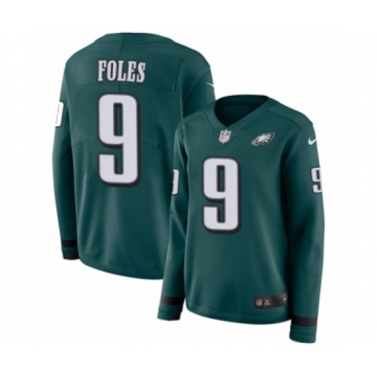 Women's Nike Philadelphia Eagles #9 Nick Foles Limited Green Therma Long Sleeve NFL Jersey