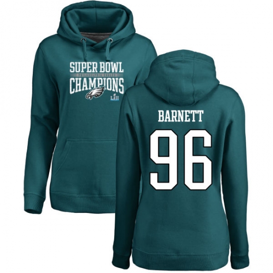 >Women's Nike Philadelphia Eagles #96 Derek Barnett Green Super Bowl LII Champions Pullover Hoodie