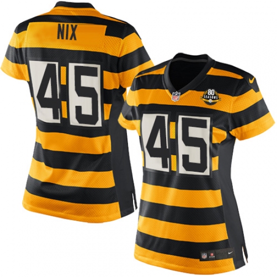Home>NFL>Pittsburgh Steelers>Roosevelt Nix>Women's Nike Pittsburgh Steelers #45 Roosevelt Nix Game Yellow/Black Alternate 80TH Anniversary Throwback NFL Jersey