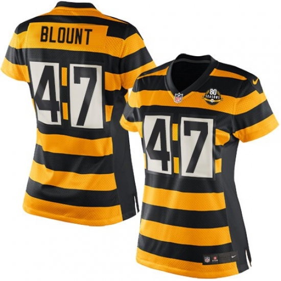 Women's Nike Pittsburgh Steelers #47 Mel Blount Game Yellow/Black Alternate 80TH Anniversary Throwback NFL Jersey