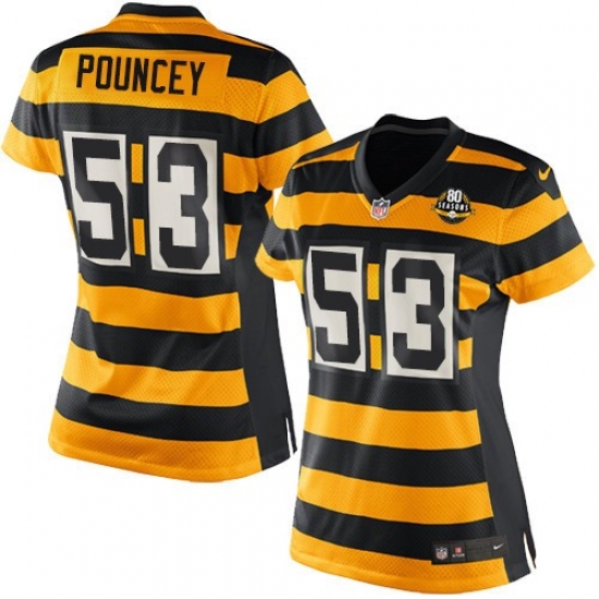 Women's Nike Pittsburgh Steelers #53 Maurkice Pouncey Limited Yellow/Black Alternate 80TH Anniversary Throwback NFL Jersey