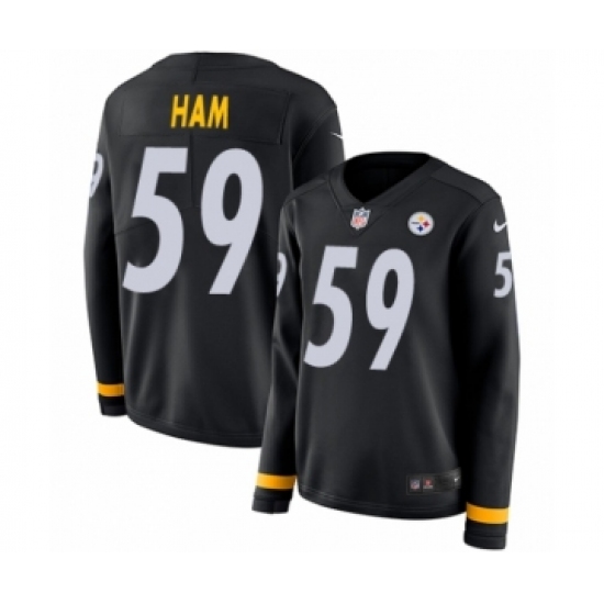 >Women's Nike Pittsburgh Steelers #59 Jack Ham Limited Black Therma Long Sleeve NFL Jersey