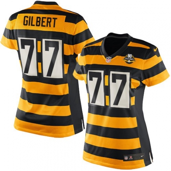 Home>NFL>Pittsburgh Steelers>Marcus Gilbert>Women's Nike Pittsburgh Steelers #77 Marcus Gilbert Limited Yellow/Black Alternate 80TH Anniversary Throwback NFL Jersey