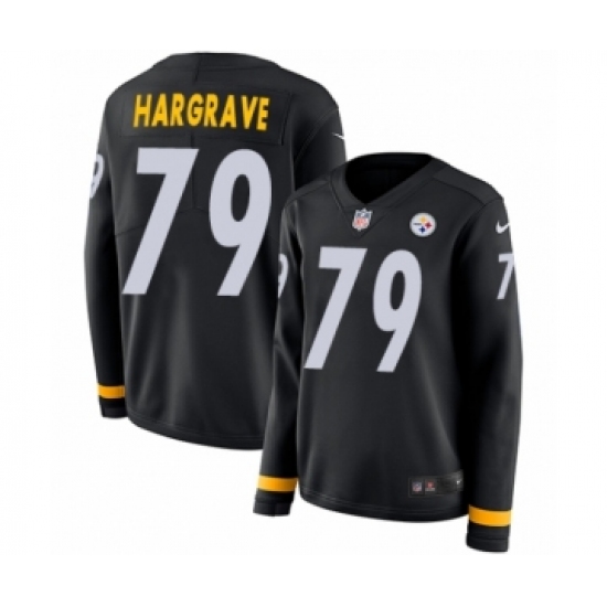 >Women's Nike Pittsburgh Steelers #79 Javon Hargrave Limited Black Therma Long Sleeve NFL Jersey