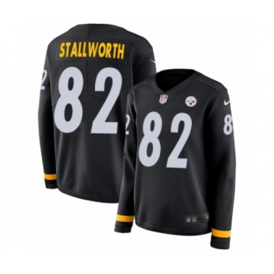 >Women's Nike Pittsburgh Steelers #82 John Stallworth Limited Black Therma Long Sleeve NFL Jersey
