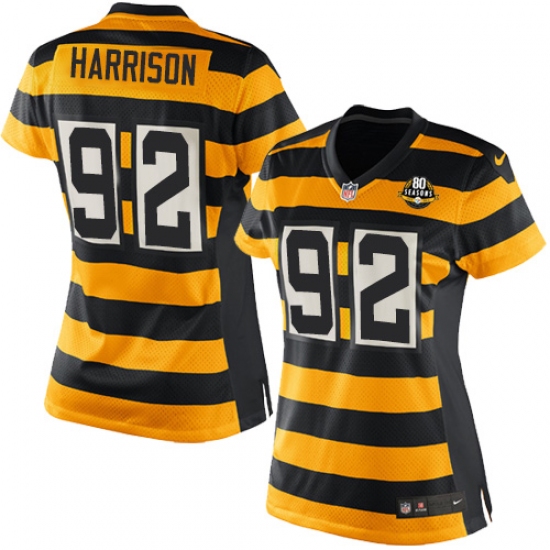 Women's Nike Pittsburgh Steelers #92 James Harrison Elite Yellow/Black Alternate 80TH Anniversary Throwback NFL Jersey