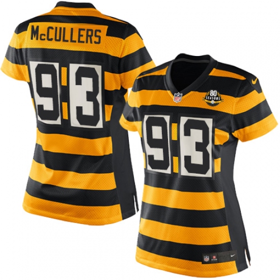 Home>NFL>Pittsburgh Steelers>Dan McCullers>Women's Nike Pittsburgh Steelers #93 Dan McCullers Game Yellow/Black Alternate 80TH Anniversary Throwback NFL Jersey