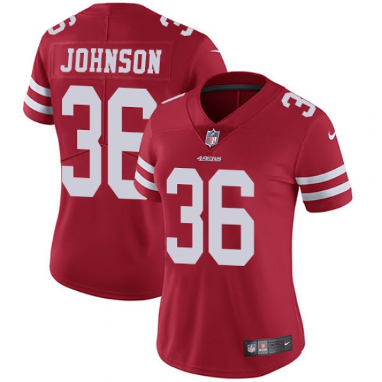 Home>NFL>San Francisco 49ers>Dontae Johnson>Women's Nike San Francisco 49ers #36 Dontae Johnson Red Team Color Vapor Untouchable Limited Player NFL Jersey
