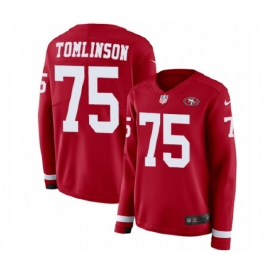 >Women's Nike San Francisco 49ers #75 Laken Tomlinson Limited Red Therma Long Sleeve NFL Jersey