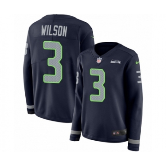 Women's Nike Seattle Seahawks #3 Russell Wilson Limited Navy Blue Therma Long Sleeve NFL Jersey