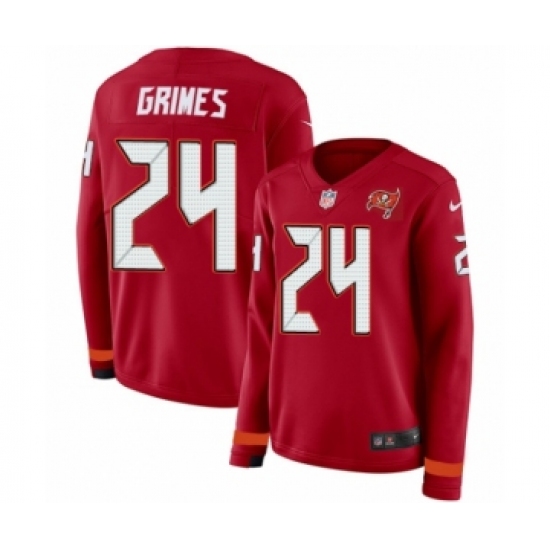 >Women's Nike Tampa Bay Buccaneers #24 Brent Grimes Limited Red Therma Long Sleeve NFL Jersey