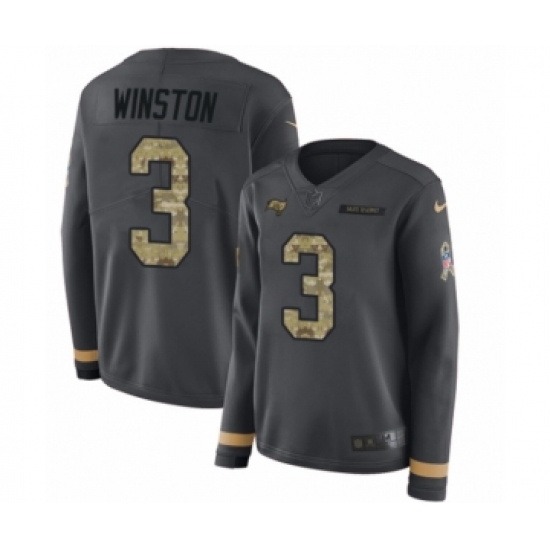 Women's Nike Tampa Bay Buccaneers #3 Jameis Winston Limited Black Salute to Service Therma Long Sleeve NFL Jersey