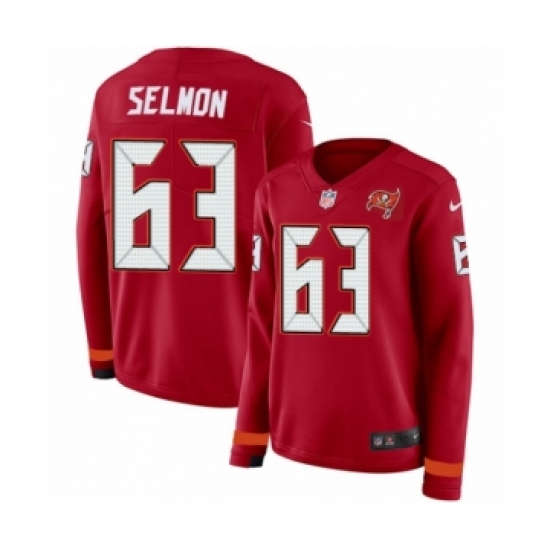 >Women's Nike Tampa Bay Buccaneers #63 Lee Roy Selmon Limited Red Therma Long Sleeve NFL Jersey