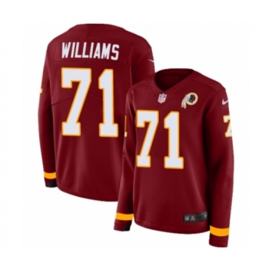 Women's Nike Washington Redskins #71 Trent Williams Limited Burgundy Therma Long Sleeve NFL Jersey