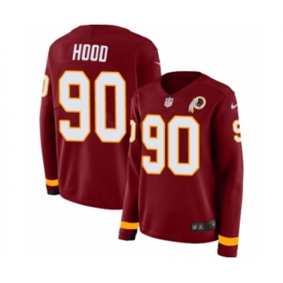 Women's Nike Washington Redskins #90 Ziggy Hood Limited Burgundy Therma Long Sleeve NFL Jersey