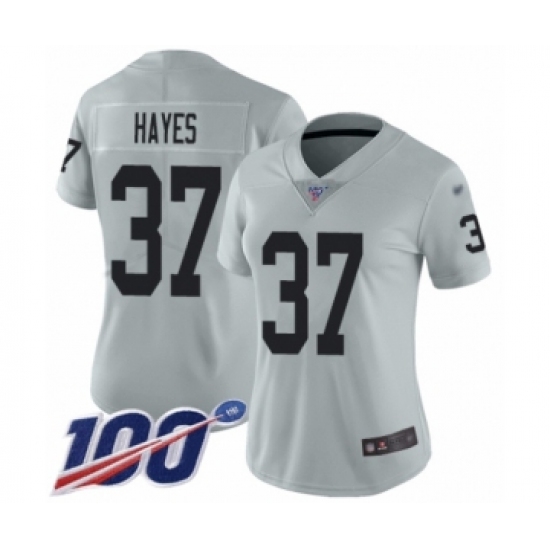 >Women's Oakland Raiders #37 Lester Hayes Limited Silver Inverted Legend 100th Season Football Jersey