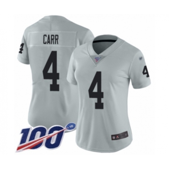 Women's Oakland Raiders #4 Derek Carr Limited Silver Inverted Legend 100th Season Football Jersey