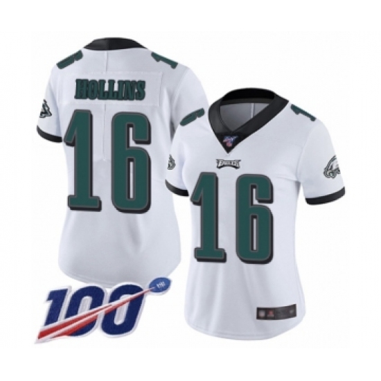 >Women's Philadelphia Eagles #16 Mack Hollins White Vapor Untouchable Limited Player 100th Season Football Jersey
